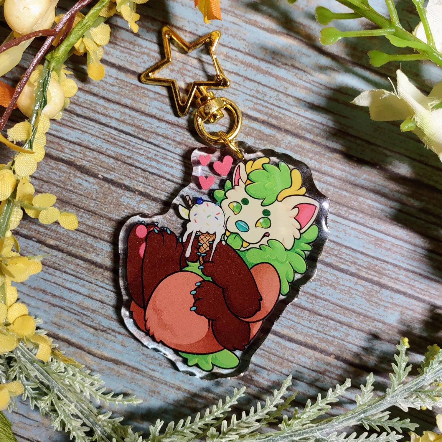 Acrylic charms are made of plastic, which means that they are waterproof but somewhat vulnerable to scratching. The epoxy coating turns it from artwork to functional artwork - it has some durability, but still needs a level of respect. (We've had one of our epoxy charms on our car keys since 2021 with no issue, but it's not competing with 30 keys and 5 other keychains. Assess the risk yourself before attaching it to something!)